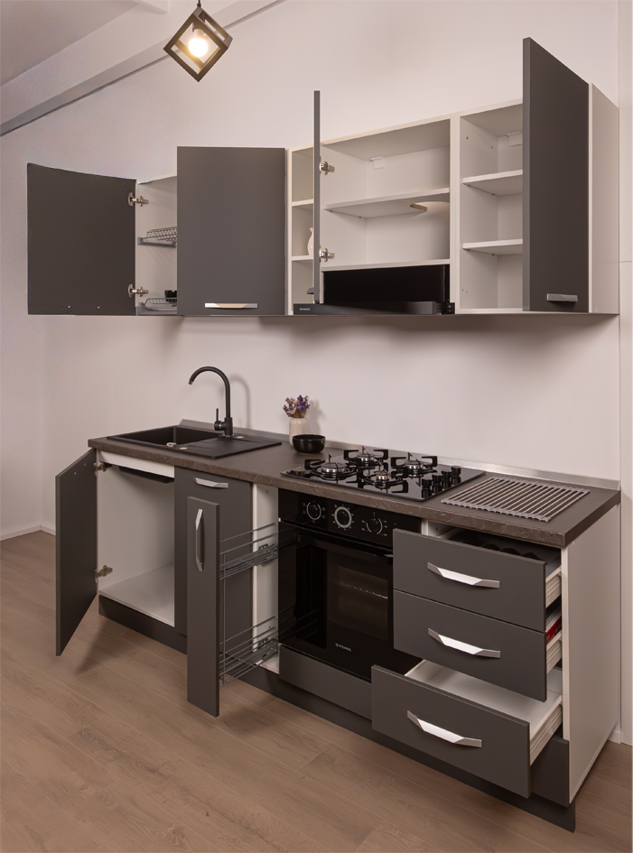 Bucătărie Modulară Completă Compact 3 – Design Urban & Contrast Antracit