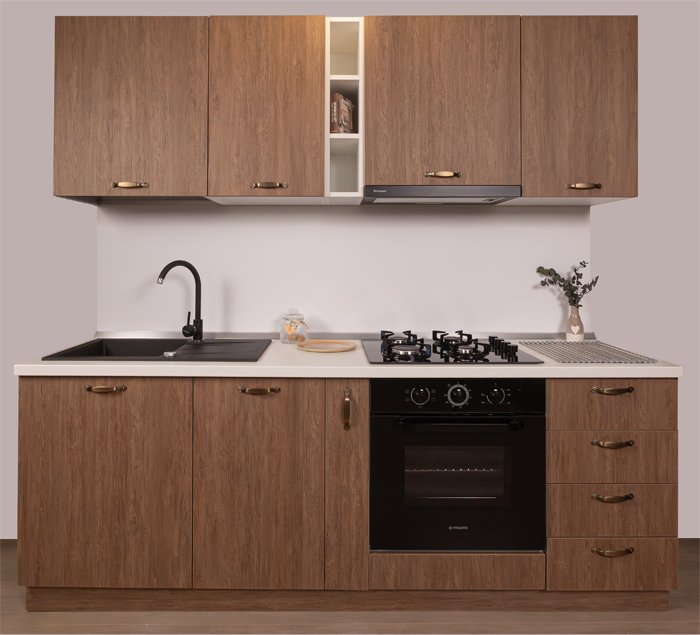 Bucătărie Modulară Completă Compact 5 – Rustic Modern & Textură Lemn Natural