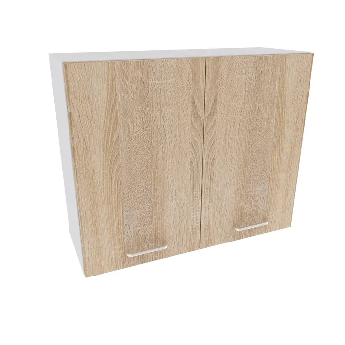 Acesta este realizat din PAL melaminat de 1.6 cm grosime si are canturi prevazute cu poliuretan, un adeziv care asigura o buna rezistenta la aburi si apa. Finisajul alb de la nivelul carcasei se imbina armonios cu finisajul stejar sonoma de la nivelul usilor, rezultand o combinatie atragatoare si un design minimalist.