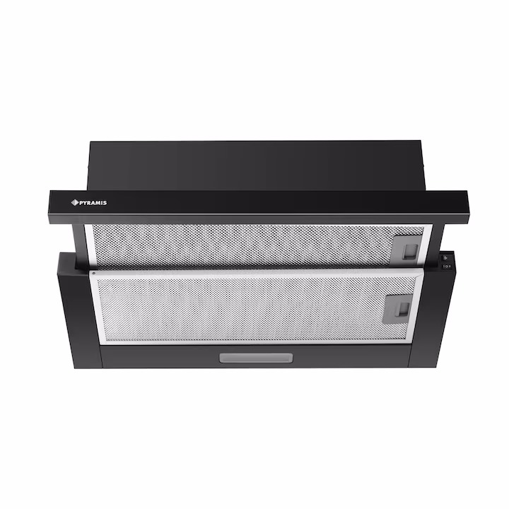 Hota telescopica Pyramis Turbo MDT SL Full Black, putere de absorbtie 573mc/h, 1 motor turbo, 60cm, finisaj negru
