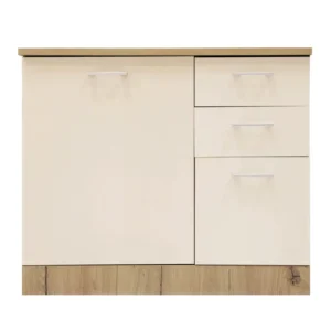 • Corp inferior bucatarie Smart 1000, cu blat, stejar A458 + crem mat, 100 x 60 x 85 cm, 2